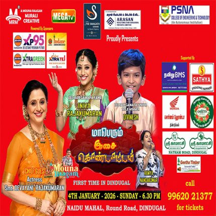 Organized by Jayam Events in association with MRM – A Mouna Raagam Murali Creative, this festival brings together music lovers for a high-energy Sunday night celebration filled with popular songs, live band performances, and an electrifying stage atmosphere.